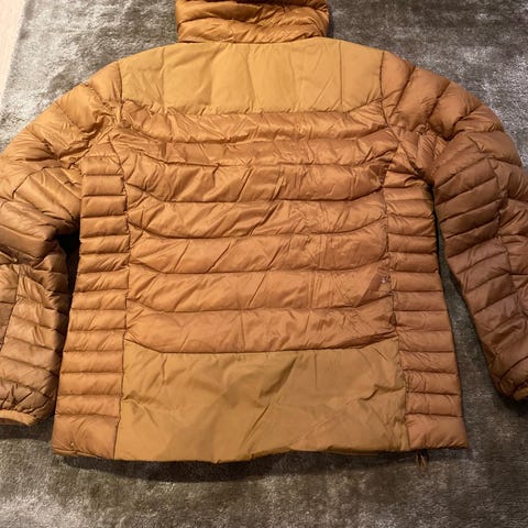 Pent brukt dunjakke i str 14 år. Nyvasket. Hempen i nakken har løsnet og det er en liten rift bak på den ene armen. Ellers i god stand.