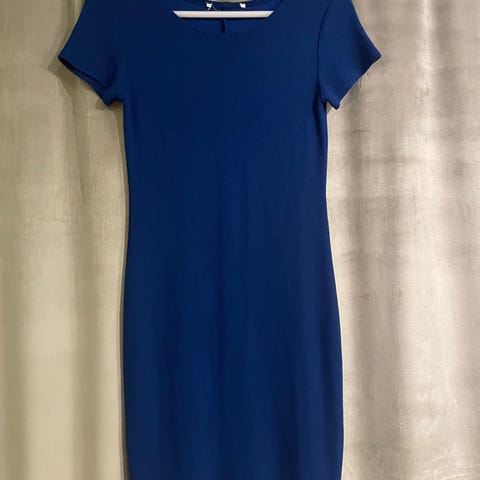 Kjole til spesiell anledning i blå farge, størrelse XS. Kjolen har blonder og et dekorativt mønster, med tynne stropper og en feminin passform. Merke er LMC (Love my clothing). Kan hentes i Tønsberg eller sendes med Fiks ferdig.