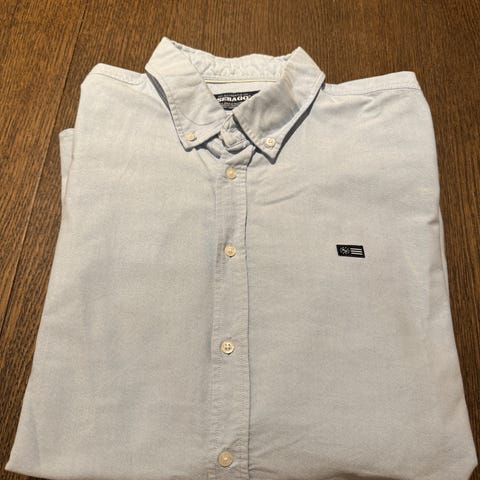 Pent brukt lyseblå skjorte fra Sebago i lett og behagelig stoff selges.