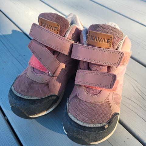 Kavat sandal for jente i størrelse 24, i rosa farge. Skoen har lukking med borrelås og er laget for barn.