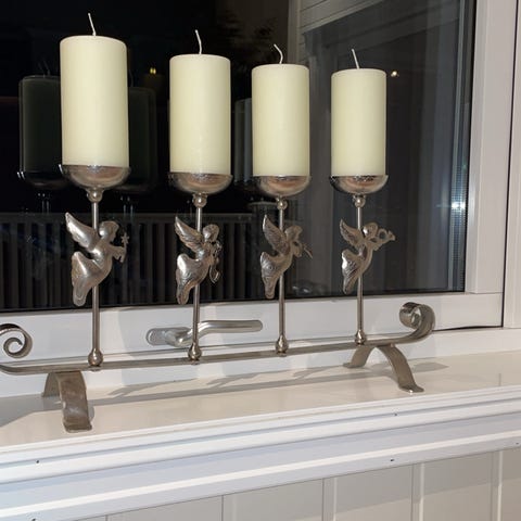 Stake. Denne er ca 1 meter lang og plass for 4 kubbelys og pynt. Vakker og majestetisk.