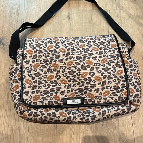 Tidløs og romslig stelleveske fra Kidzroom i skinnlignende materiale. Veldig pent brukt, ingen merker eller slitasje. Rikelig med mindre lommer for organisering, både på innsiden og utsiden av veska. Følger med et lite brukt stelleunderlag.