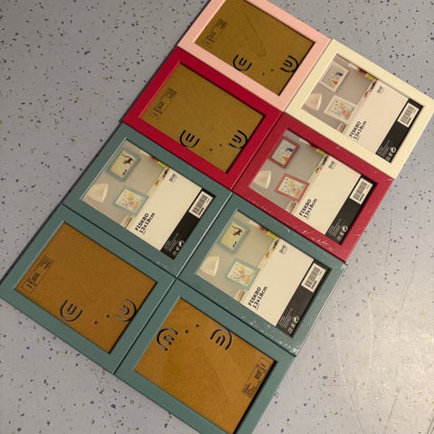 Selger unna IKEA FISKEBO rammer med størrelse 8x10 og 13x18 cm i hvit farge. Passer til bilder eller dekorasjoner av tilsvarende størrelse.