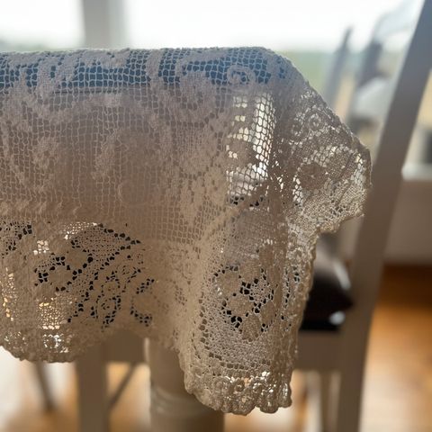 Arvegods -gammel håndheklet duk - skadefri, nyvasket og stivet.