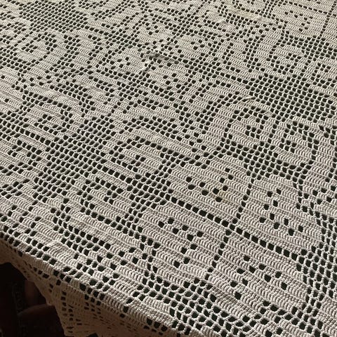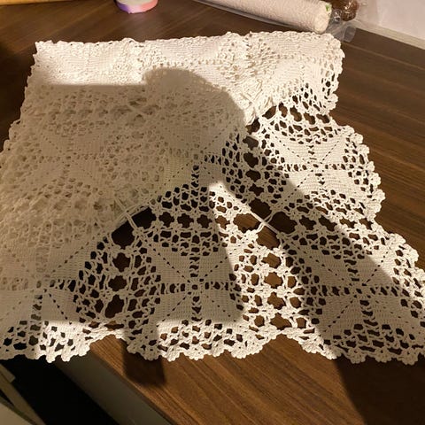 Arvegods - gammelt heklet duk i farge kry/gråbeige