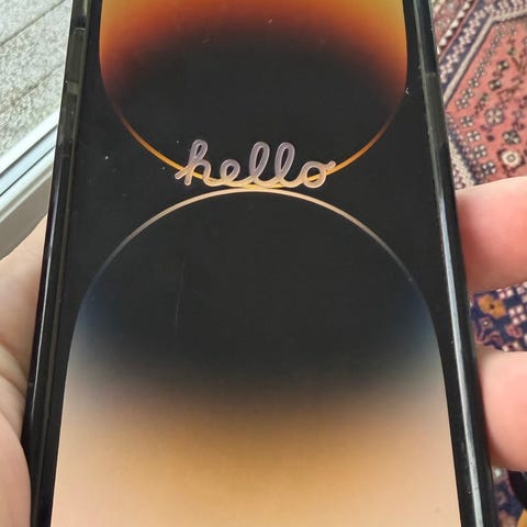 Grunnen til at denne er neste ny men har et par småriper er fordi den ble byttet inn på forsikring grunnet knust skjerm. Da fikk jeg ny IPhone 14 pro max, men etter 4 uke kjøpte jeg ny telefon for å selge denne i best mulig stand. Telefonen med knust skjerm som jeg byttet inn var sort, derfor er også boksen sort.