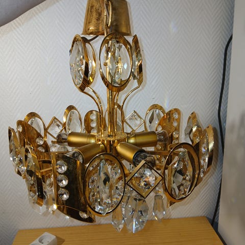 Lampen er hel og pen, med normal bruksslitasje som gir ekte retro-preg. Klassisk kjedeløsning gjør den enkel å justere i høyde.