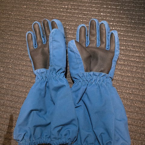 Polarn O. Pyret hansker i blå farge, unisex, størrelse one size/2-4år. Hanskene har elastisk mansjett og materiale som gir grep og beskyttelse for hender ved utendørs bruk.
