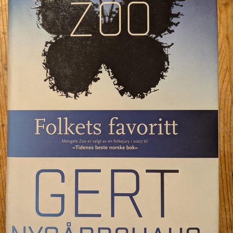 (Wikipedia): Mengele Zoo er en roman fra 1989 av den norske forfatteren Gert Nygårdshaug. Dette er første bok i en kvintologi som også kalles Mino-serien.