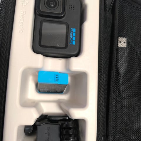 Selger min GoPro Hero 10 Black med ubrukt Max Lens Mod, ND1000-filter, 4 originale batterier, dobbel-lader, mini-tripod og bæreveske. Alt virker selvfølgelig som det skal. Pent brukt, men noen bruksmerker er det selvsagt. Linsen og skjermen bak er helt fine! Ved rask avgjørelse inkluderer jeg to minnekort også. Ta kontakt hvis du lurer på noe.