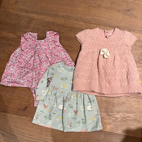 Selger en klespakke (totalt 22 plagg). Har sett fort over klærna, å fant flekk på den ene bodyen, andre kan forekomme.