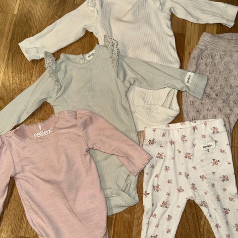 Liten Newbie klespakke (body, lue, cardigan) str 62