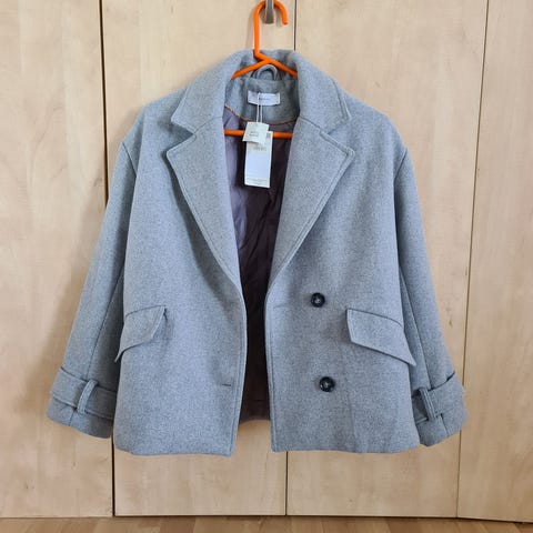 Desigual med avtagbar grå strikkekrage og med fint lilla for inni selges for