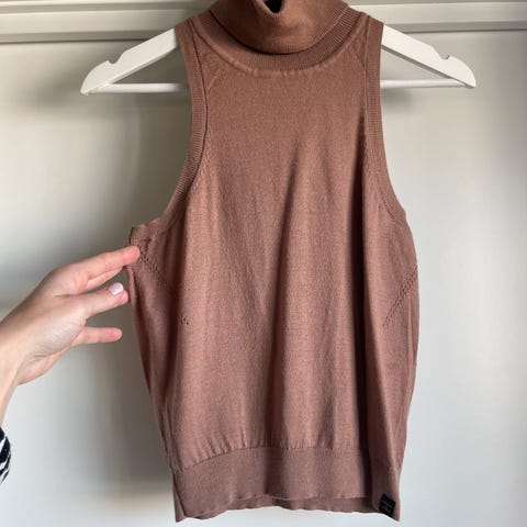 Selger denne nydelige toppen i ull med silke i karamell/kaffe/brun fra Nøste 🤎 Str 42-44, men jeg opplever den som nærmere 42 🫶🏼 Perfekt til både høst og vinter 🍂