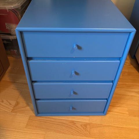 Montana kommode med 7 skuffer. 6 av skuffene er uttrekkbare brett. Den nederste skuffen er en stor skuff med hengemapper.