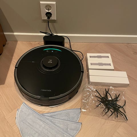 Selger en moderne robotstøvsuger i svart farge, pent brukt og i svært god stand. Perfekt for deg som ønsker et renere hjem med minimal innsats.
