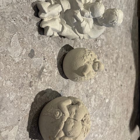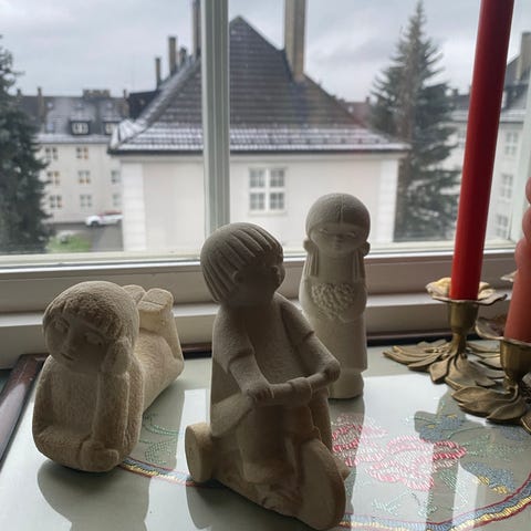 Selger miniatyr figurene snehvit og de syv dvergene i brun keramikk/ terrakotta. 2 hus medfølger. Er fra 1970/1980 tallet. Tidligere stått i settekasse.