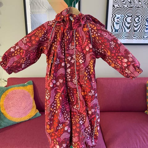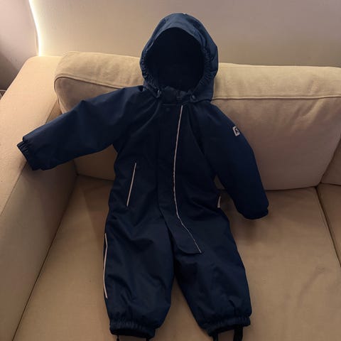 Vinterdress størrelse 80. God og varm, med plass til ull under. Brukt av flere barn, men mye bruk igjen! Stroppen under er nylig byttet.