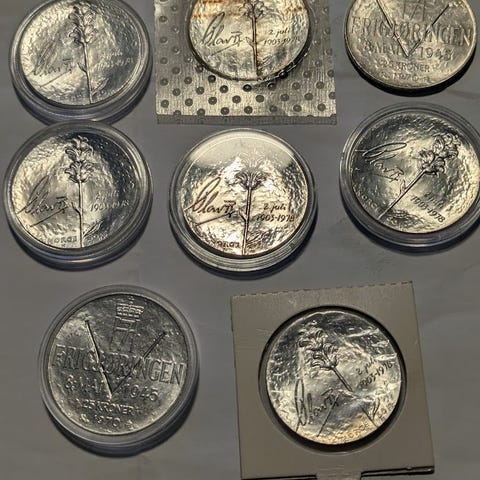 3x 25 kr Frigjøringen - 76,11 gram rent sølv