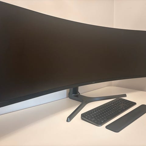 Samsung 49" C49RG90 buet skjerm med stor visningsflate. Passer for bruk på kontor eller hjemme for arbeid, spilling eller multimedia.