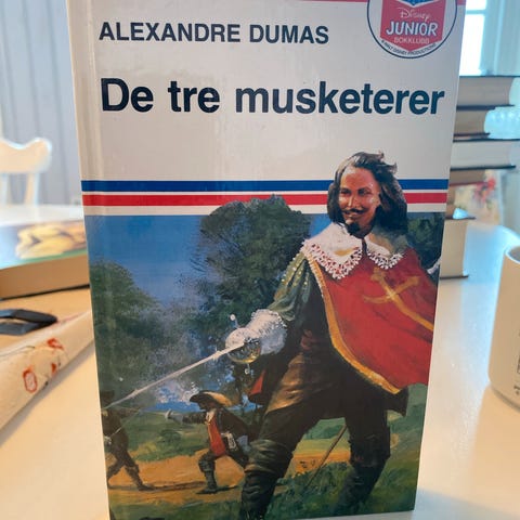 Alexandre Dumas De tre musketører er en roman. Boken har et omslag med illustrasjon av en musketer i historisk antrekk, og den er en del av Junior-serien.
