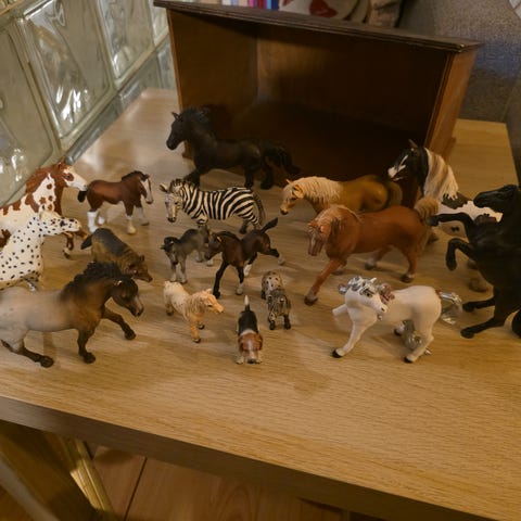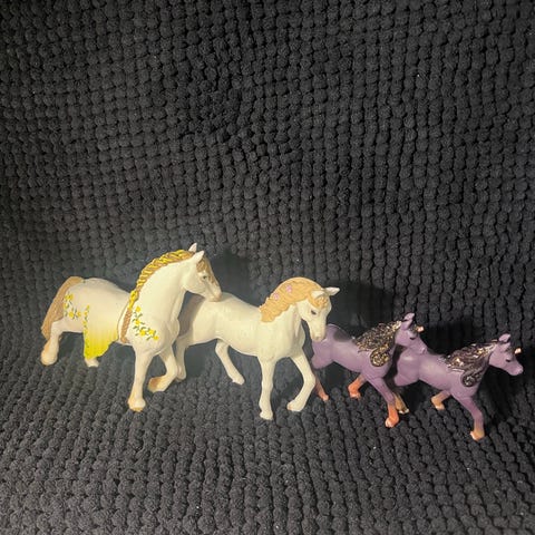 Schleich hest lekesett med sal og tilbehør. Settet inkluderer flere hester i ulike farger med detaljerte saler. Egnet for barn fra 3 år og oppover. Laget i robust materiale for lek og samling.