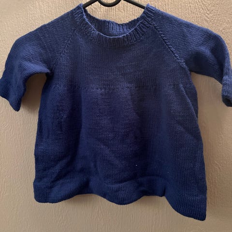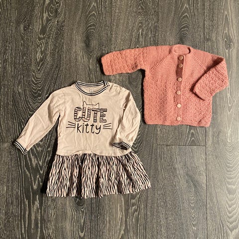 Nydelig hjemmestrikket kjole med Mariusmønster. Brukt her da jenta vår var ca str 86. Se evt bilder for mål. Mykt og herlig garn syns jeg.
