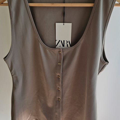 Tank top fra merket Tara. Aldri brukt. Den har en liten flekk oppe på høyre side (se bilde), men den går sikkert bort i vask.