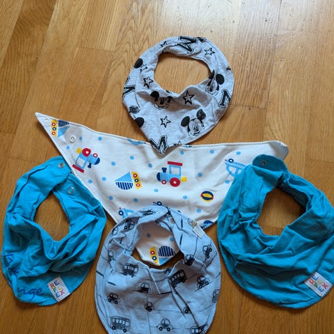 Merk: En av smekkene har en rosa flekk (trolig fra blyant eller lignende). Har ikke forsøkt å fjerne den – ellers er alle hele og fullt brukbare.