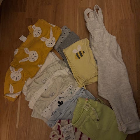 Det blå settet genser og bukse (Nameit)er brukt 2/3 ganger er en liten flekk på se bilde ikke prøvd å få av