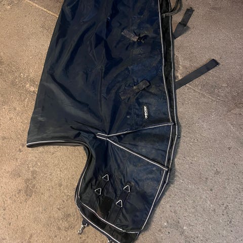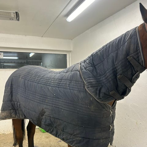 Skoies regndekken med ullfor str 135 selges da hesten vokste ut av det. Kun brukt et par dager, men midt i røyte- og søletiden. Derfor ikke akkurat spesielt rent, selvom det er helt. Vaskes ikke før salg. Både tørker pelsen og holder hesten tørr selv når det bøtter ned, for det har vi testet. Det er to magestropper og to bensnorer på dekkenet.