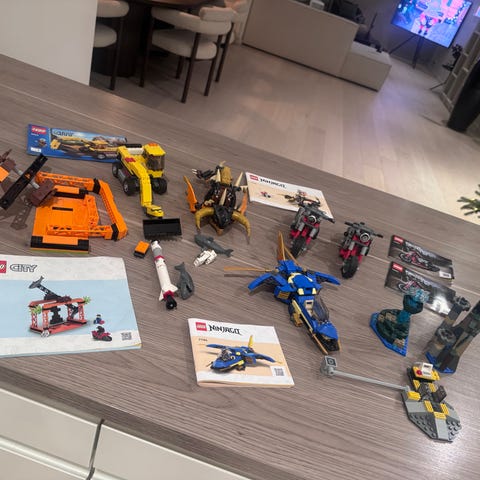 Diverse lego selges. Noe demontert og sortert med oppskrift, annet samlet i en pose. Har også et nesten komplett fly.