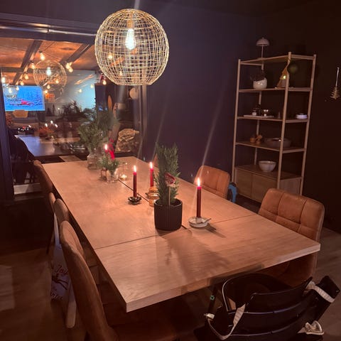 Noen små merker av kulepenn og noen fettflekker på bord og stoler, men ikke noe en legger spesielt merke til.