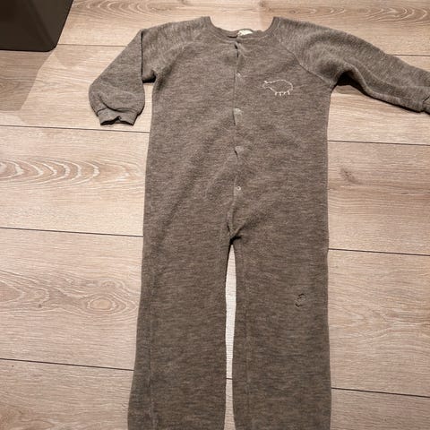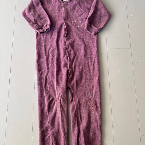 Nøstebarn ull heldress/pysj i blå farge, størrelse 116. Laget av 100% ull, egnet for å gi varme. Har et gammelt hull vi har sydd, pluss noe nupper særlig nederst på ben. Helt fin på innsiden. Mange år igjen! Røykfritt hjem 🤍