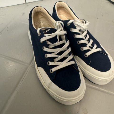 Ralph Lauren Sneakers joggesko i størrelse 44. Skoene har en kombinasjon av lyse og grå farger, med snøring foran. Passer til daglig bruk og fritidsaktiviteter.