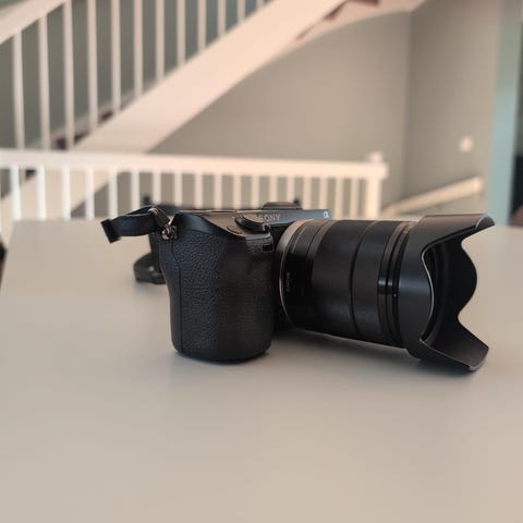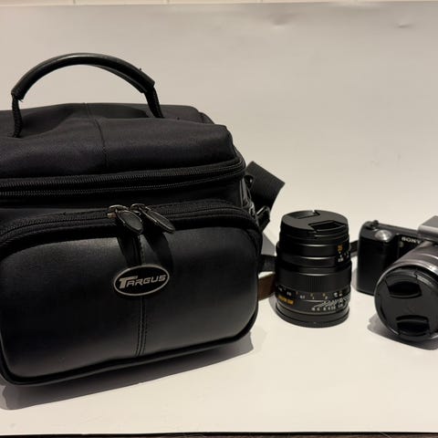 Følger med batteri, lader og Sony SEL1855 18-55 mm objektiv.