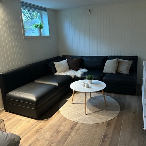 Medfølger to sett med bein, originale og de som står på nå er slik at robotstøvsuger kan gå under sofaen. Selges pga.flytting.