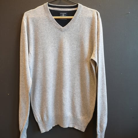 Genseren er laget av 65 % silke og 35 % kasjmir. Materiale gir mykhet og komfort. Genseren har V-hals og langermet design. Kashmir, kasjmir, ull, cashmere, seide, silke