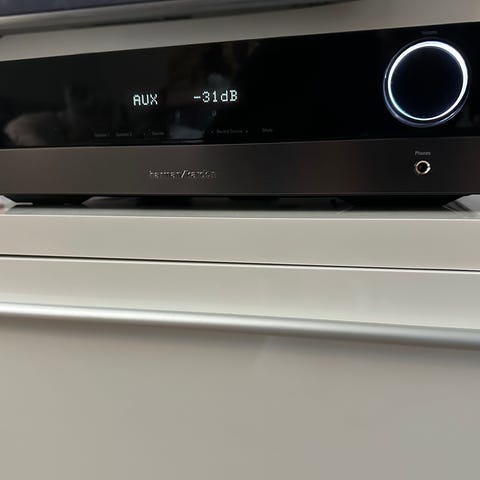 Råsterk stereo-forsterker selges grunnet overgang til aktive høyttalere. Mulig for to høyttaler-sett. Normal slitasje. Alt er i orden og funker utmerket. Original fjernkontroll.