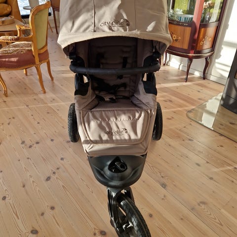 Fint brukt Baby Jogger City Elite til salgs. Fint brukt. Lite hull i oppbevaring under vogna. Med vognpose.