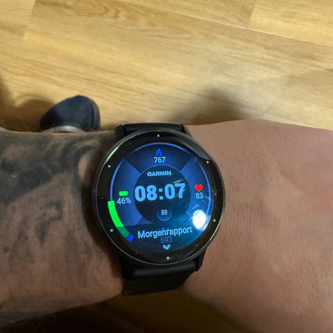 Garmin Venu 3S pulsklokke med tilhørende lader selges.