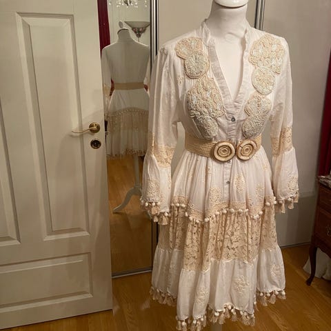 Selger denne fantastiske kjolen. Bonnie i størrelse 34/XS, farge rose/gull. Den er akkurat litt for stram, så jeg har kjøpt en til i en størrelse større. Kun brukt én gang og ble kjøpt i desember 2025.