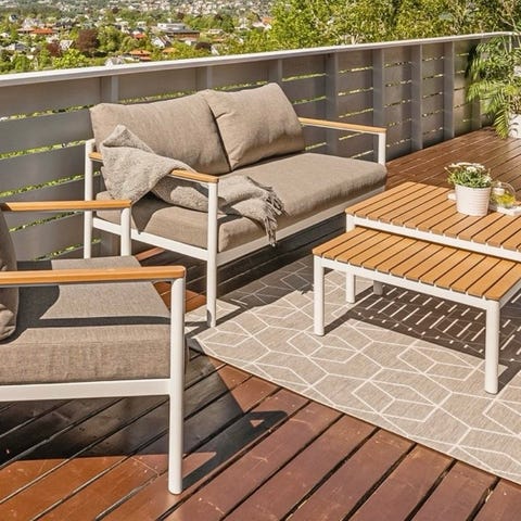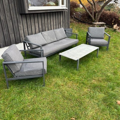 Den har blitt brukt 1 sesong og fremstår som ny. Ingen skader på verken puter eller settet og har stått under tak hele året.