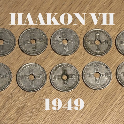 1 Kr 1949 Haakon VII unc selges kr 100.-+porto