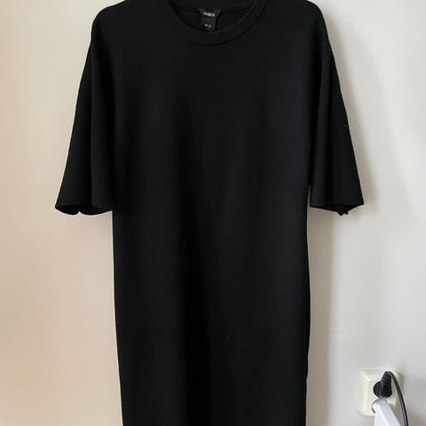 H&M ullkjole i størrelse M. Kjolen er kremhvit og har et strikket mønster som er noe ulikt foran, på ermene og bak. Se bilder for detaljer. Flott kjole som er perfekt på vinteren. Jeg selger denne fordi jeg har rett og slett for mange.