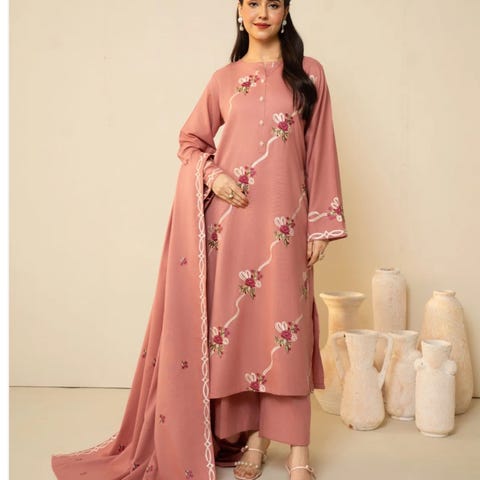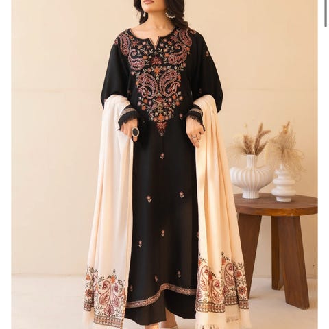 3 pc ferdig sydd vinter stoff full embroidered shirt og shawl løs bukse.