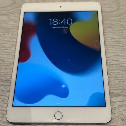 Selger en iPad mini 4 med 16 GB lagring. Fungerer som den skal. Pent brukt. Ingen riper på skjerm, men noen overflateriper på baksiden. Støtter opptil iOS 15 og fungerer med alle apper som er kompatible med versjon 15.8.2 eller eldre.