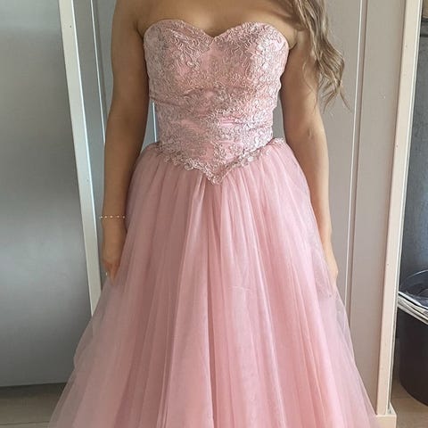 Selger en ballkjole som kun ble brukt på ett ball. Kjolen er fra merket Abby Paris, kjolen er i en fantastisk fersken farge med fine detaljer og fin finish.