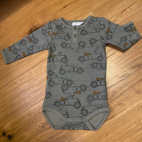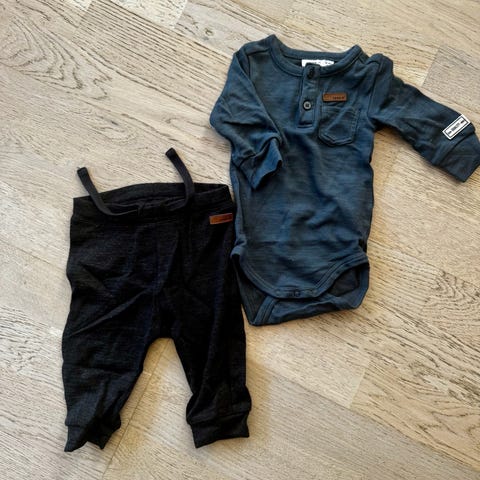 Name it Ull body og bukse brun og grønn gutt størrelse 62
