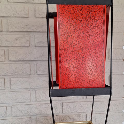 Stativet er laget av trepaneler holdt sammen av bølgete kobberbånd.